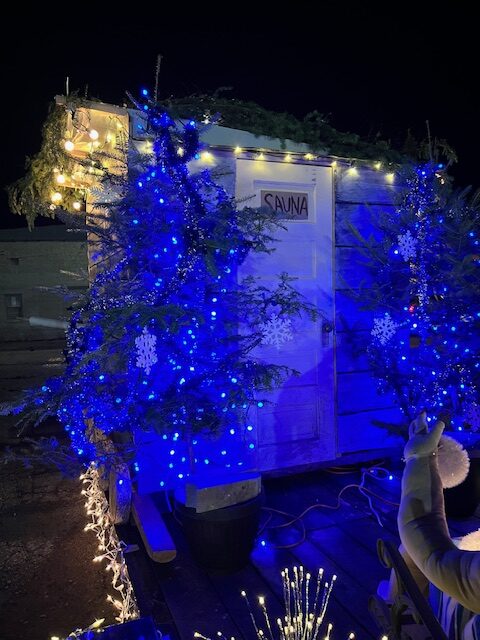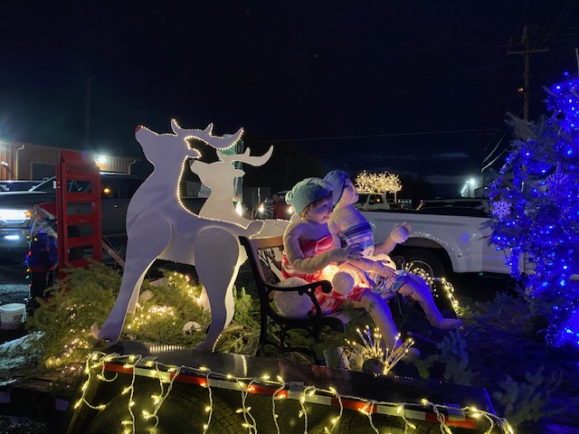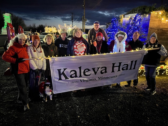 Knights #25 and Ladies #32 brace the cool weather to promote Kaleva Hall in the city’s Twilight Holiday Parade in Virginia MN.